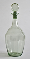 | W10870 Rare Art Nouveau pale green decanter with club shaped body and terraced shoulder. Original matching hollow blown disc stopper. Designed by Sir T. G. Jackson for James Powell & Sons, Whitefriars, London. Circa 1890. Height: 11 ins. Price: £495.00. |