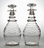 See Decanters 1760-1930 by David Leigh, page 22, for a pair of decanters of identical design. Height: 10¼ inches. Price: £275.00. |