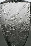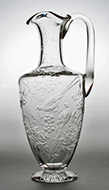 W10741 Beautiful Victorian amphora shaped wine ewer decorated in intaglio with birds, flowers foliage and lattice, on star-cut foot. Plain handle. Circa 1870.