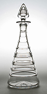 W10896 Superb Art Deco conical decanter decorated with horizontal bands of concentric prisms. Star-cut base. Original matching hollow blown spire stopper. Tudor Crystal, Stourbridge. Circa 1930.