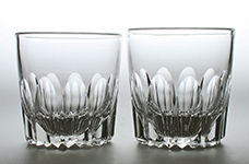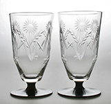 8288 Fine pair of Art Deco tumblers decorated with stylised ferns, on feet decorated en suite with stylised ferns. Webb Corbett. Circa 1930.