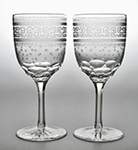 W9983 Fine pair of Victorian goblets engraved with elaborate key pattern over basal hollow facets, on fluted stems and star-cut feet. Circa 1880.