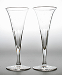 W10072 Lovely pair of Victorian trumpet shaped champagne flutes cut with basal broad flutes. Circa 1860.